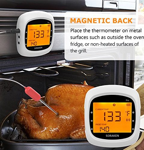 This Soraken Digital Wireless Thermometer has 4 Probes that allows you to accurately cook by monitoring both your Meat and Oven/Smoker/Grill temp remotely from 196 feet away.